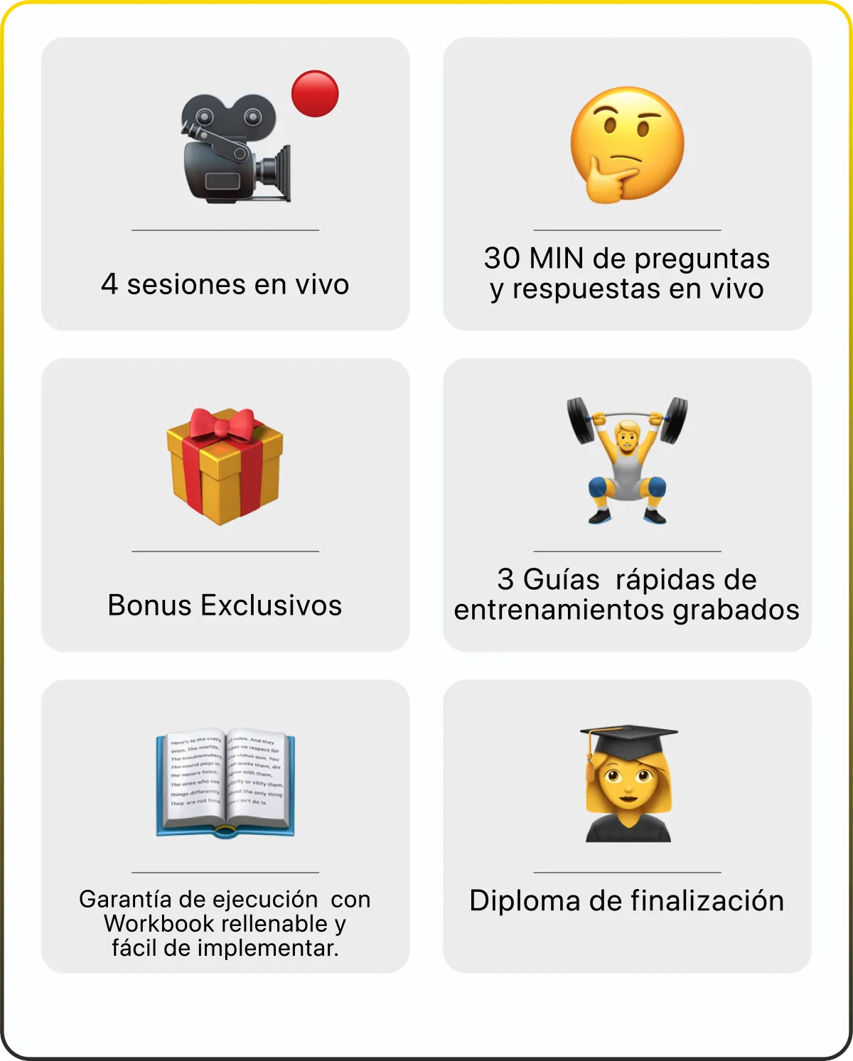 El bootcamp es en vivo, tendrás acceso a la grabación y a todo el contenido de los bonus de por vida. Así que podrás repasar el contenido cuantas veces quieras. ¡INSCRIBE A TU EQUIPO!